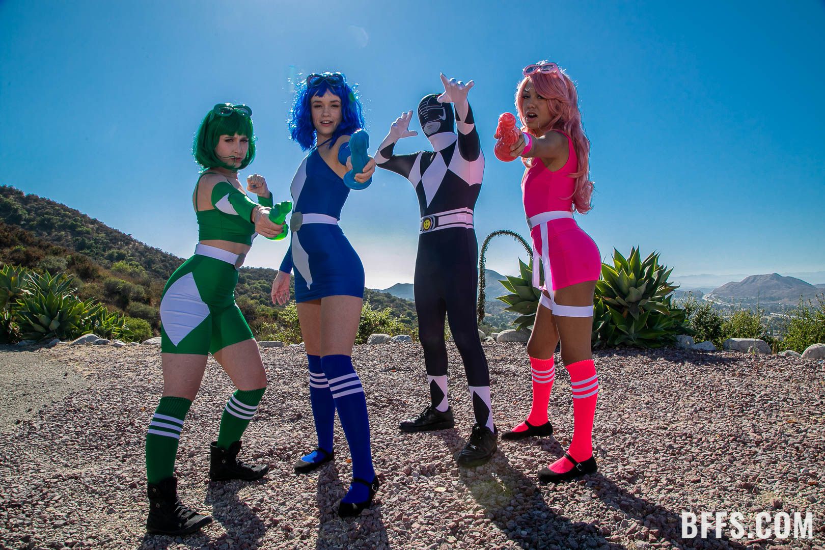 Monsters beware! The “Mighty Power Pussy Smashers” are serving some horny justice in a new BFFS scene. Bianca Bangs, Khloe Kingsley, Laney Grey, and Elias Cash are a band of sexy crime-fighting superheros. During a battle with their strongest enemy, the girls are left to fend for themselves as the black ranger (Elias) is nowhere to be found when they need him. When the girls confront him after losing the battle, Elias apologizes for falling asleep and not being able to help with the fight. The girls won’t accept his apology until he helps them recharge their powers– with sex!