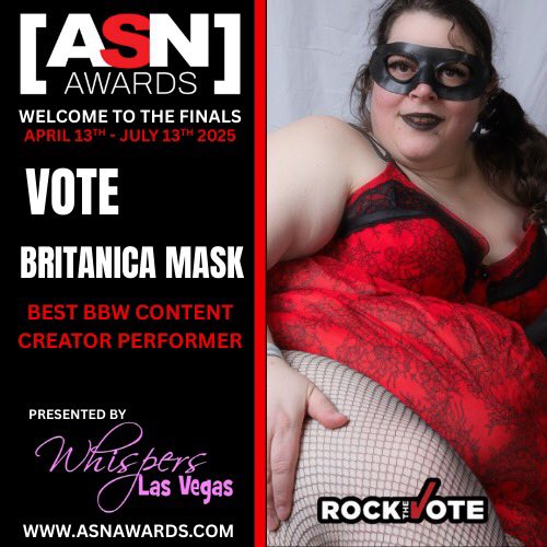 Fans and supporters can now show their love by voting for Britanicamask as BBW Content Creator of the Year at the ASN Lifestyle Magazine Awards: