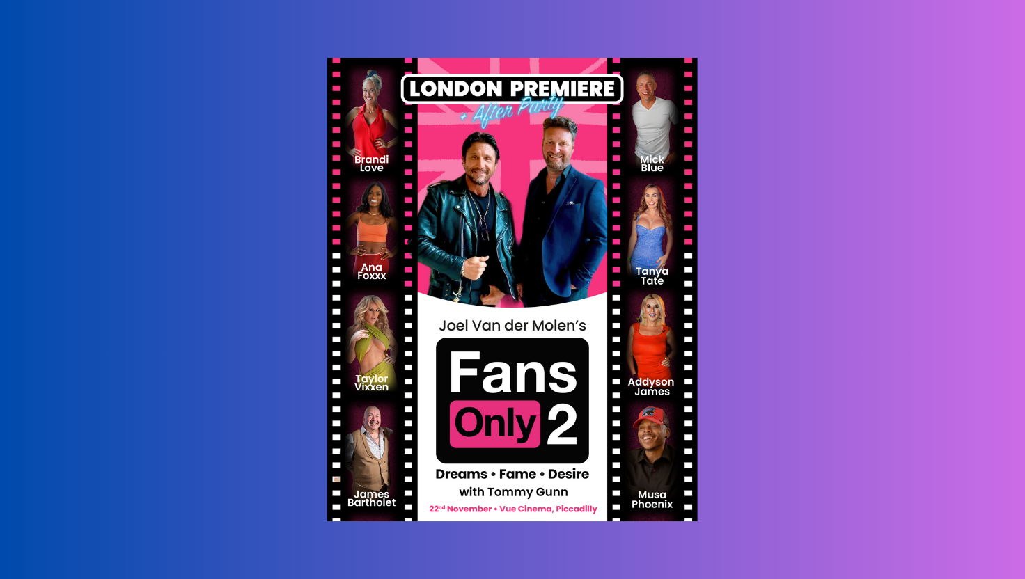 The London premiere of Fans Only 2: Dreams·Fame·Desire promises to be a night to remember, with cast appearances and stars from the adult entertainment world, red carpet photo opportunities, and an exclusive after-party. Fans and press attendees will have the rare chance to meet the stars, celebrate independent filmmaking, and experience the latest instalment of this thought-provoking series.