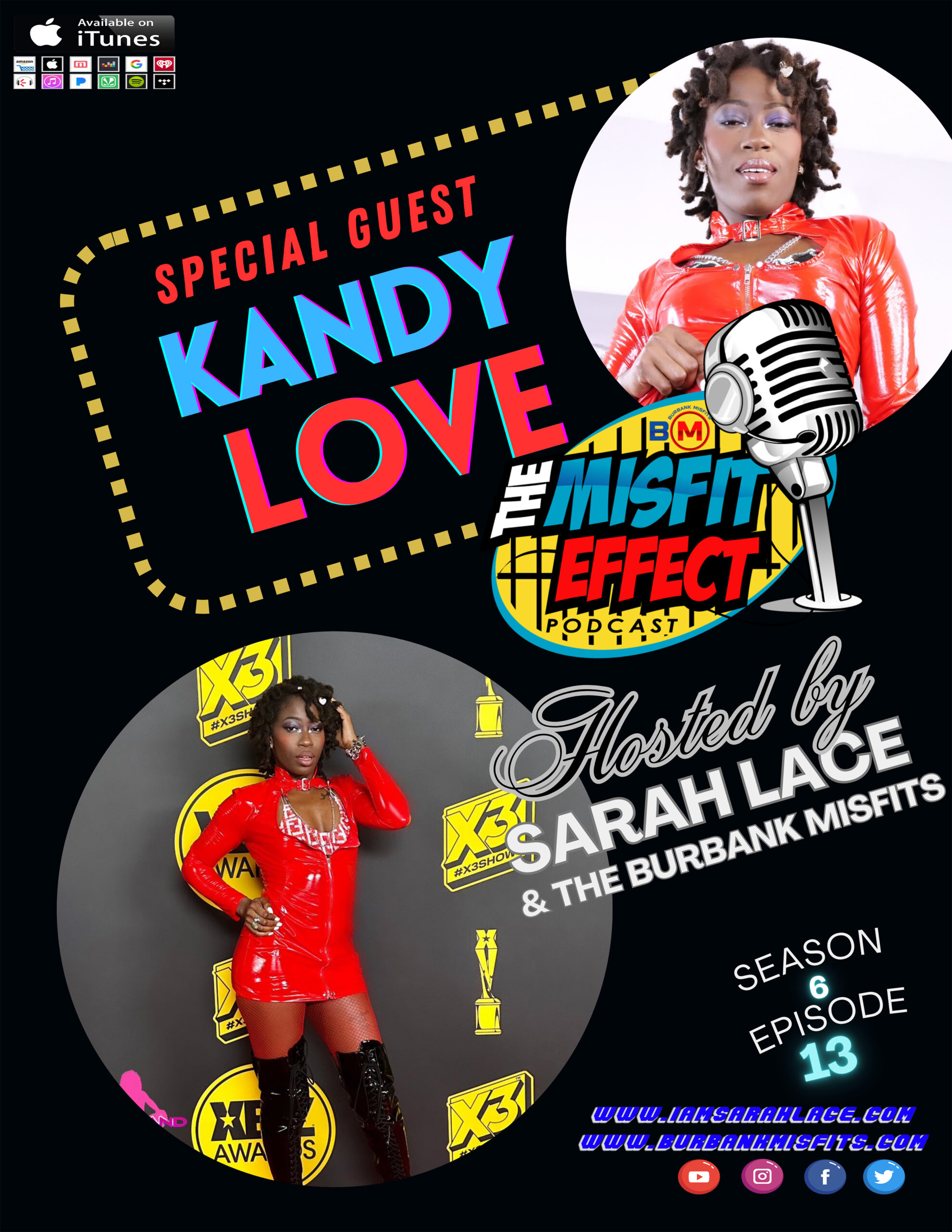 In episode 13 of season 6, Kandy Love appears on the episode titled “It’s Like Kandy Effect.” Love says, “The Misfit Effect Podcast was like catching up with friends and having those conversations you appreciate being able to have around THOSE friends. Not everybody can hold space for your salacious escapades while allowing you to be yourself and go at your own pace but they welcome honest and fun conversations you won’t find anywhere else and make you feel super comfortable all the while! This is a don’t miss episode for sure.”