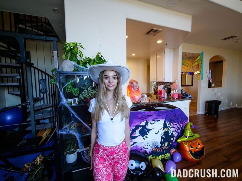 Molly Little plans a Halloween party at her stepdad’s (Brad Newman) house in a new Dad Crush scene, “Don’t Be a Party Pooper.” Molly has been staying at her stepdad’s house while her mom is out of town. While in the house, Brad discovers that Molly is trying to throw a Halloween party there. He tells her she can have the party on one condition, he gets to do whatever he pleases with her.