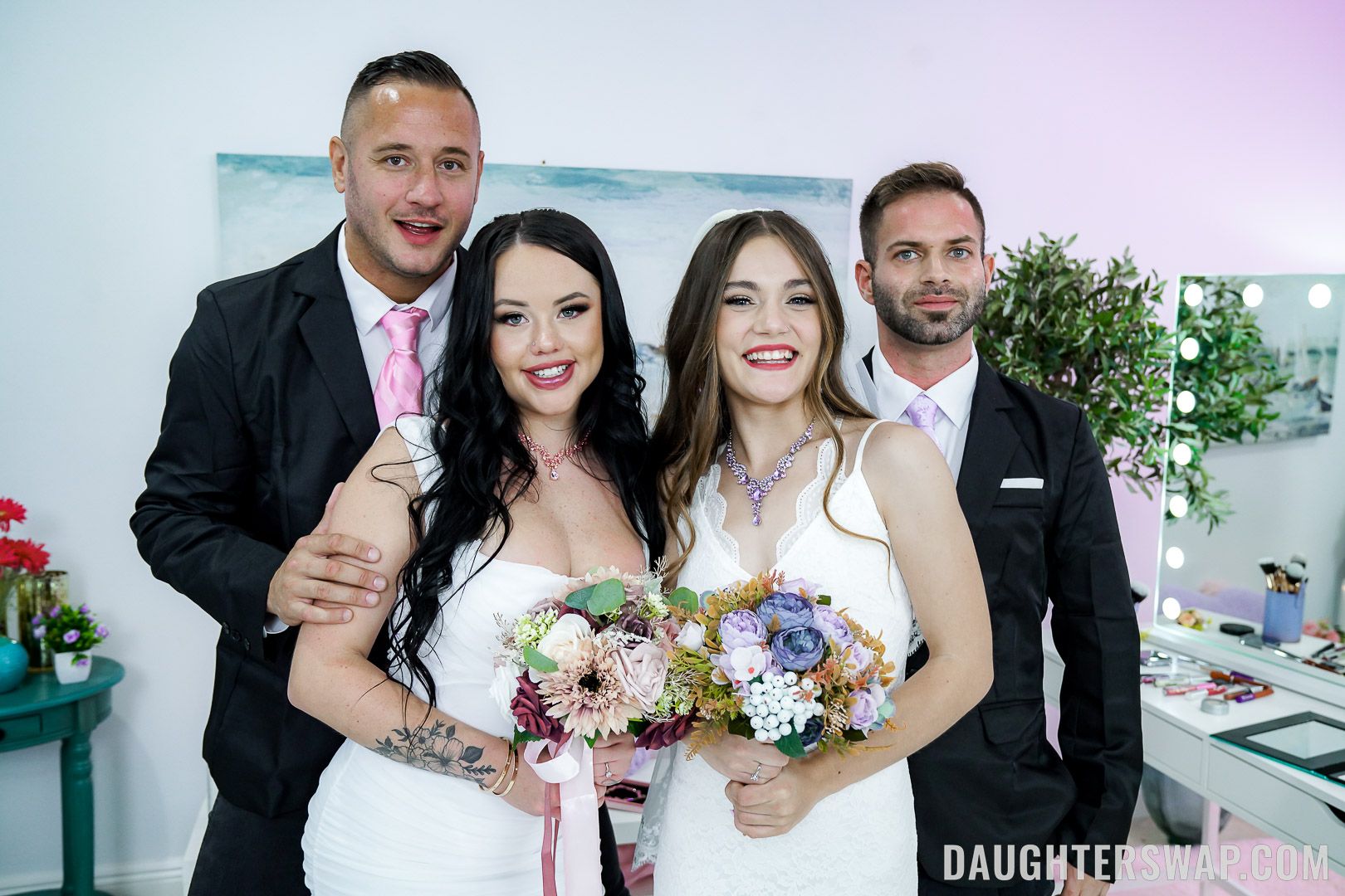 When Juniper Ren and Madalina Moon get left at the altar, their stepdads (Danny Mountain and Nicky Rebel) step up to make their daughters feel better by reminding them how sexually desirable they still are in a new Daughter Swap episode, “Runaway Grooms! Deflowering Our Girls Before Their Husbands”.